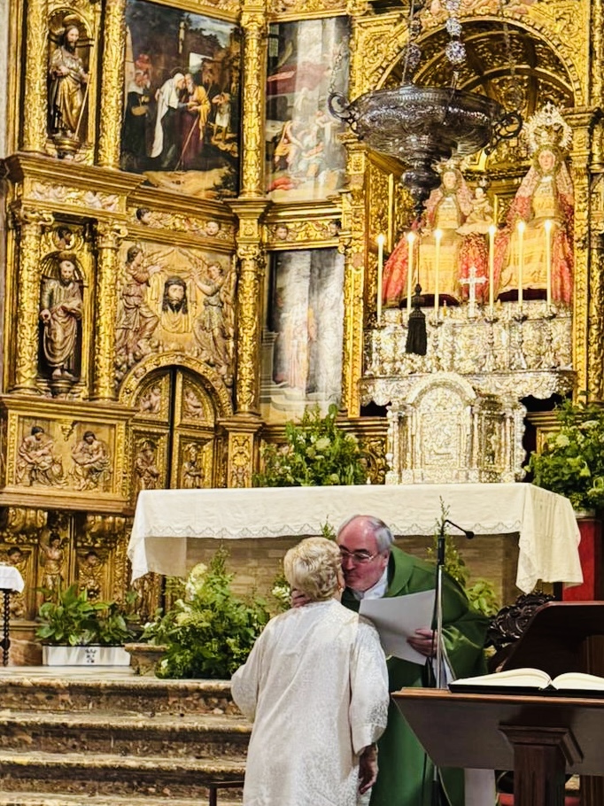 domingo 21 de septiembre, han tomado posesión de sus servicios a la comunidad y a los más pobres de nuestra feligresía los siguientes colaboradores de Cáritas parroquial: Doña Carmen Salgado Rodríguez, como directora, Don Arturo Lammers García, como tesorero, Don Fernando Carbonero Celis, como secretario, y Doña Setefilla Lora Gancedo y Doña María Jesús Pérez Moro como vocales de Cáritas de la Real Parroquia de Señora Santa Ana. El nuevo equipo directivo ha recibido el encargo del párroco de sensibilizar, a las personas que participan en la Eucaristía dominical, a los grupos parroquiales y a las hermandades de la Parroquia, en la importancia de colaborar con Cáritas parroquial y a través de ella en la atención a nuestros vecinos más necesitados.